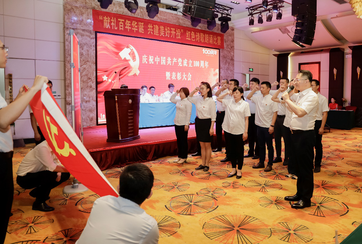 百年征程波澜壮阔,百年初心历久弥坚。为庆祝中国共产党建党100周年,深入开展党史学习教育。6月30日下午,开投公司在兆瑞国际大酒店召开纪念建党100周年暨表彰大会,并开展红色诗歌朗诵比赛。公司党委书记、董事长唐武,开投、信用公司领导班子成员、党员、各民主党派人士、入党积极分子代表等180余人参加。大会由公司党委副书记、总经理陈龙主持。